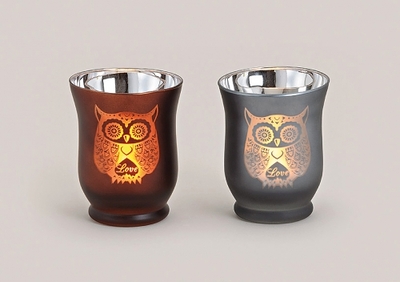 WINDLICHT GLAS EULE DEKOR 2-F.S.11X9CM}