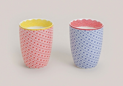 BECHER RETRO PORZ. ROT/BLAU 2-F.S.10CM