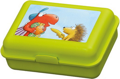 Kokosnuss-BrotdoseDre kleine Drache Kokosnuss-Brotdose.Stabile Brotdose für Kindergarten, Schule und Freizeit.Material: Kunststoff mit lustigem Kokosnussbild auf dem Deckel.Die Dose kann mit einem herausnehmbaren Steg zu 50/50 oder 30/70 abgeteilt werden.