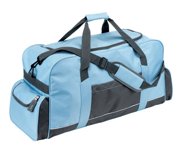 | Produktname: | 600D Sporttasche "Breeze" hellblau/grau, ca. 71 x 24 x 33 cm |