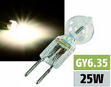 - GY6,35 - 25W - mittlere Lebensdauer 4.000 Stunden - Lichtstrom 500 Lumen - Farbtemperatur 2800K - warmweiß - Energieeffizienz-Klasse D - 12V