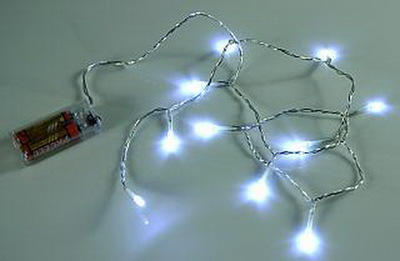 Gesamtlänge ca. 1,3m - 10 LEDs - Abstand zwischen den LEDs 10cm - weiß - sehr lange Lebensdauer - Stromversorgung über 2x AA Mignon (nicht enthalten) - transparentes Kabel - IP20 - für Innen