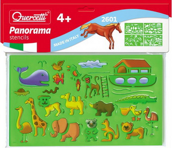 Farbige Zeichenschablonen mit verschiedenen Motiven.