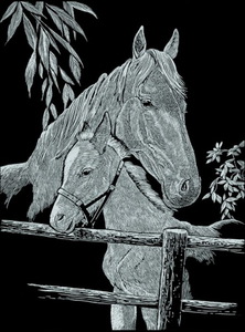 | Produktname: | Kratzbilder silber Pferd mit Fohlen 20x25,5cm |
