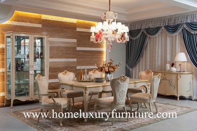 Wooden Dining table and chairs luxury dining room sets glass cabinet buffet cabinet FT101