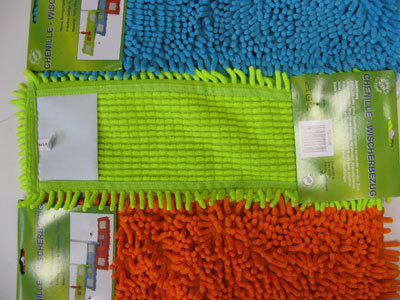 Wischbezug chenille, Ersatzwischbezug fuer den Bodenwischmopp Chenille (Artikelnr. 1182)--farblich gemischt im Karton--leichter Austausch, durch Hebeltechnikin 3 versch. Neonfarben (orange, gruen, blau)Grösse: Bodenwischbezug 40 cm x 13 cm