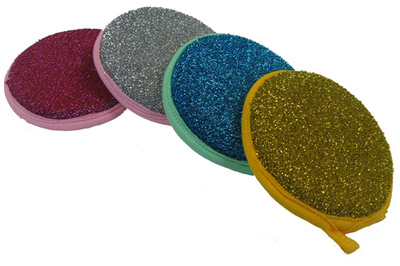 12 cm Durchmesser, 3 cm hoch, Pfannenfrosch, mit weicher und robuster Seite, für den Haushalt und die Küche, reinigt auch die Pfannen, im Plastikbeutel verpackt, in 5 sehr schönen Farben sortiert (gold, silber, blau, rot)-- SUPERZUGABEARTIKEL --