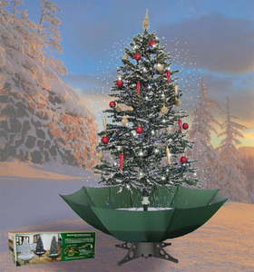 Weihnachtsbaum 2m hoch, schneiend, integrierter Motor wirbelt den Kunstschnee durch den hohlen Baumstamm immer wieder nach oben, Baumschmuck in silber (Kugeln und Zapfen), blinkende Lichterkette, mit verschiedenen WeihnachtsmelodienProduktmerkmale: 25 teiligGesamthöhe 200cm Schirm ca. 125 cm DurchmesserLichterkette in weißleuchtend Styroporkügelchen für den Schnee mit Ständer