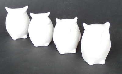 4 verschiedene Eulen gemischt im Aufsteller, mit einem LED, Batterien im Lieferumfang enthalten (3x AG10),6x5x9cm groß