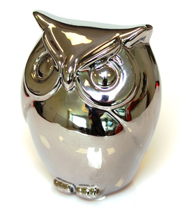 silberne Deko-Eule, Grösse: 6,5x5x8cm, edles und modernes DESIGN - ideal zum verschenken-- wegen Bruchgefahr - Versand nur auf Palette --