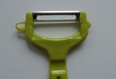 superscharfer Schäler mit zweiseitiger Zahnklinge, - 3 verschiedene Farben --wird geliefert wie lagernd-- ( grün, orange, gelb, rot), incl. Klingenschutz !- Größe: 14,2 x 8,2 cmschält leicht und locker ohne Mühe:Karotten, Äpfel, Rettich, Parmesan, Gurken, und noch vieles vieles mehr... Optimaler Zugabeartikel für Kunden !!!!