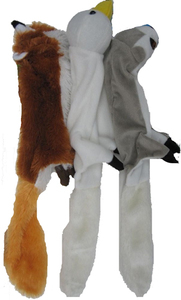 Spiel und Spass für Ihren Hund, Länge 54cm, weiches flauschiges Material, mit quietschendem Teil im Kopf des Spielzeuges, 3 verschiedene Grössen gemischt im Karton, - Fuchs - Gans - Biber