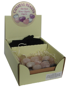 im Aufsteller, Halbedelsteinherzen - 3 verschiedene gemischt (Amthyste, rosenquartz und Quartz), Grösse: ca. 3cm,