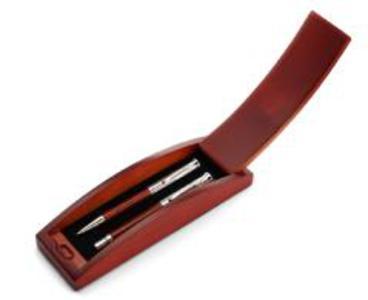 Set bestehend aus Holz-Etui, Dreh-Kugelschreiber, Rollerball, schwarze Mine.