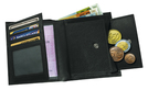 ein Reißverschluss Hartgeldfach mit Mittelwand und 6 Kreditkartenfächern,Einkaufs-Chip unter dem Überschlag,zwei Scheinfächer,3 Einsteckfächer,12 Kreditkartenfächer davon ein Klarsichtfach,ein Reißverschluss-Mittelfach,ein großes Netzfach,Metall Logo mit BB Gravur,Anitk-Rindleder12x10x1,5