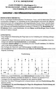 Wir verkaufen seit 20 Jahren ein erprobtes, langanhaltend wirksames und einfach anzuwendendes Mittel gegen die Maulwurf- und Wühlmausplage. Aus der beiliegenden Anwendungs- und Produktbeschreibung mit Zeichnung, in welchen Abständen die Stäbchen gesteckt werden müssen, um die dementsprechende Wirkung zu erzielen. Die Mindestabnahme sind 100 Beutel. Für Rückfragen stehen wir Ihnen gerne zur Verfügung.